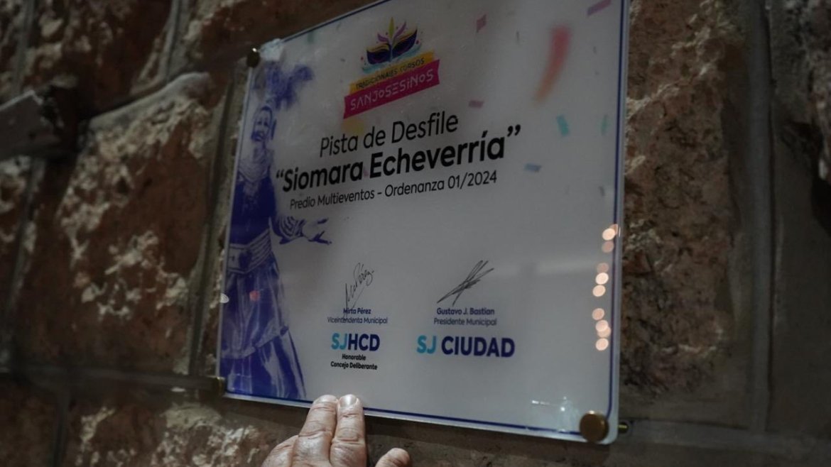 Antes del inicio de los Tradicionales Corsos Sanjosesinos, se realizó el acto de nombramiento de la pista del Predio Multieventos, que desde ahora llevará el nombre de Siomara Echeverría, en reconocimiento a su legado, compromiso y amor por el carnaval.