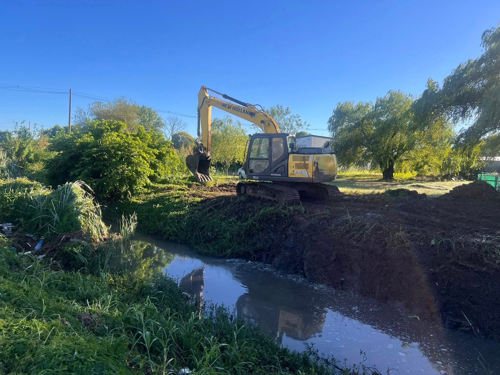 La Secretaría de Obras Públicas de la Municipalidad continúa llevando adelante trabajos con maquinaria pesada en la limpieza de la canalización de la cuenca Rivadavia, en la zona norte de la ciudad.