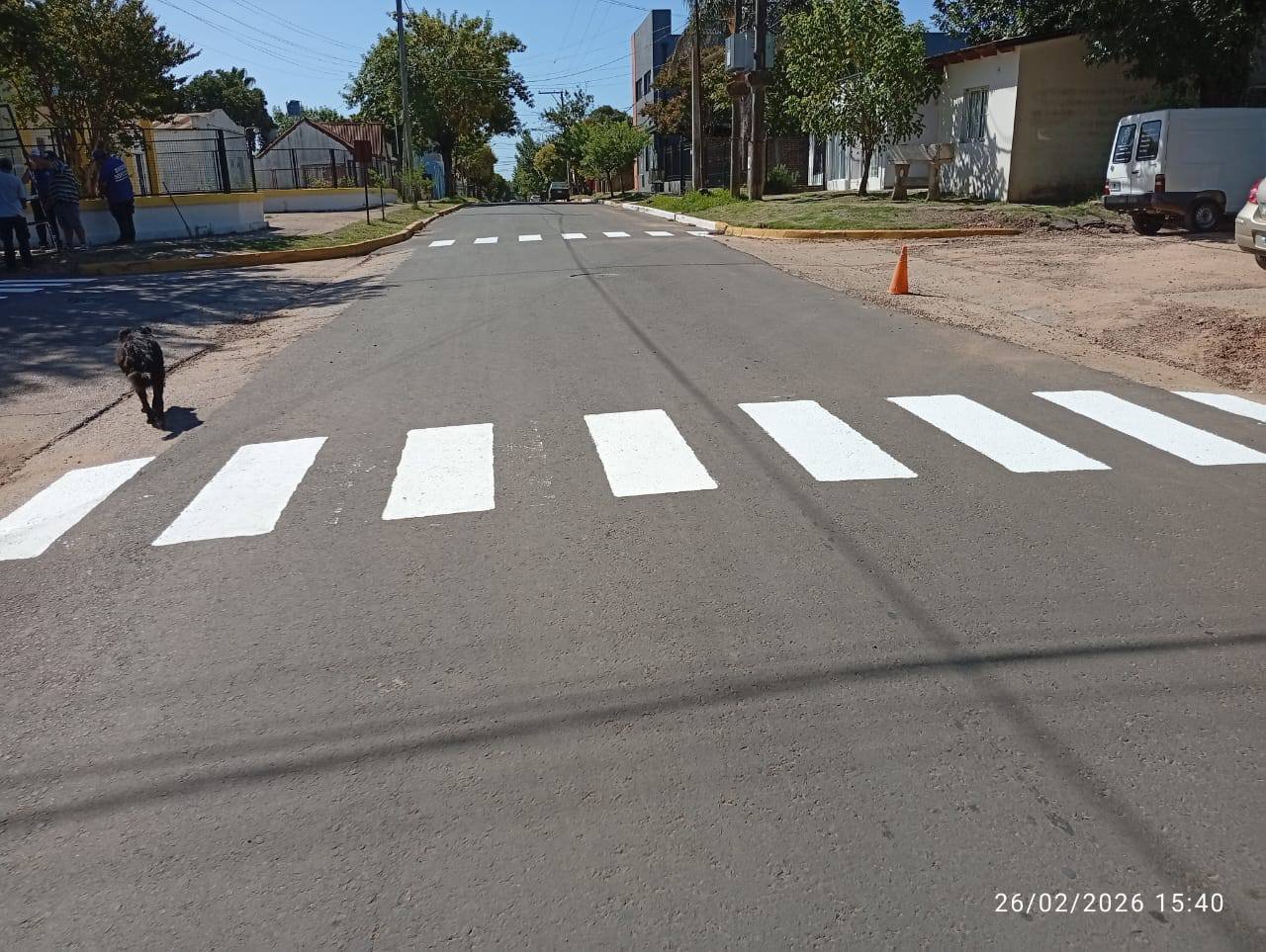 Estos trabajos tienen como objetivo reforzar la seguridad vial en zonas de alto tránsito, especialmente en horarios de ingreso y egreso escolar, brindando mayor visibilidad a los cruces peatonales y promoviendo el respeto por las normas de circulación.